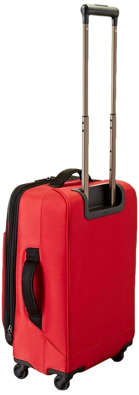 Whether packing for yourself or for a whole family, this spacious four-wheeledupright has ample capacity for your needs. Comfort grip, one-touch, dual-trolley aluminum handle system locks into two different positions, 41-inch and39-inch, to accommodate travelers of various heights. A four-wheel castersystem adds stability, providing 360-degree maneuverability and producing zeroweight-in-hand when rolling upright. Spacious main packing area expands 2-inchfor additional packing capacity and features lockable zipper sliders. Interiorfeatures a zippered hanging pocket, compression straps and a full-lengthzippered mesh pocket for storing toiletries and other small essentials. Topquick-access pocket conveniently holds tickets and other essentials. Top andside padded haul handles. Removable attach-a-bag strap secures an additionalbag to the front of the upright for consolidated travel. Lockable ykk racquetcoil zippers provide superior burst strength. Integrated slide-out id tag forsecurity and convenience.