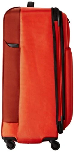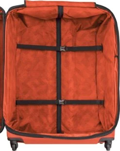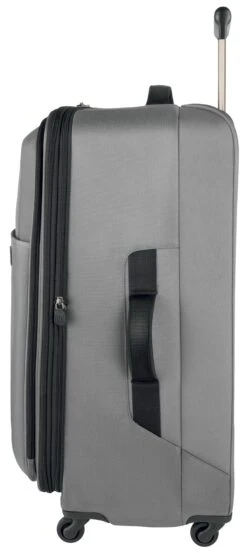 Whether packing for yourself or for a whole family, this spacious four-wheeledupright has ample capacity for your needs. Comfort grip, one-touch, dual-trolley aluminum handle system locks into two different positions, 41-inch and39-inch, to accommodate travelers of various heights. A four-wheel castersystem adds stability, providing 360-degree maneuverability and producing zeroweight-in-hand when rolling upright. Spacious main packing area expands 2-inchfor additional packing capacity and features lockable zipper sliders. Interiorfeatures a zippered hanging pocket, compression straps and a full-lengthzippered mesh pocket for storing toiletries and other small essentials. Topquick-access pocket conveniently holds tickets and other essentials. Top andside padded haul handles. Removable attach-a-bag strap secures an additionalbag to the front of the upright for consolidated travel. Lockable ykk racquetcoil zippers provide superior burst strength. Integrated slide-out id tag forsecurity and convenience.