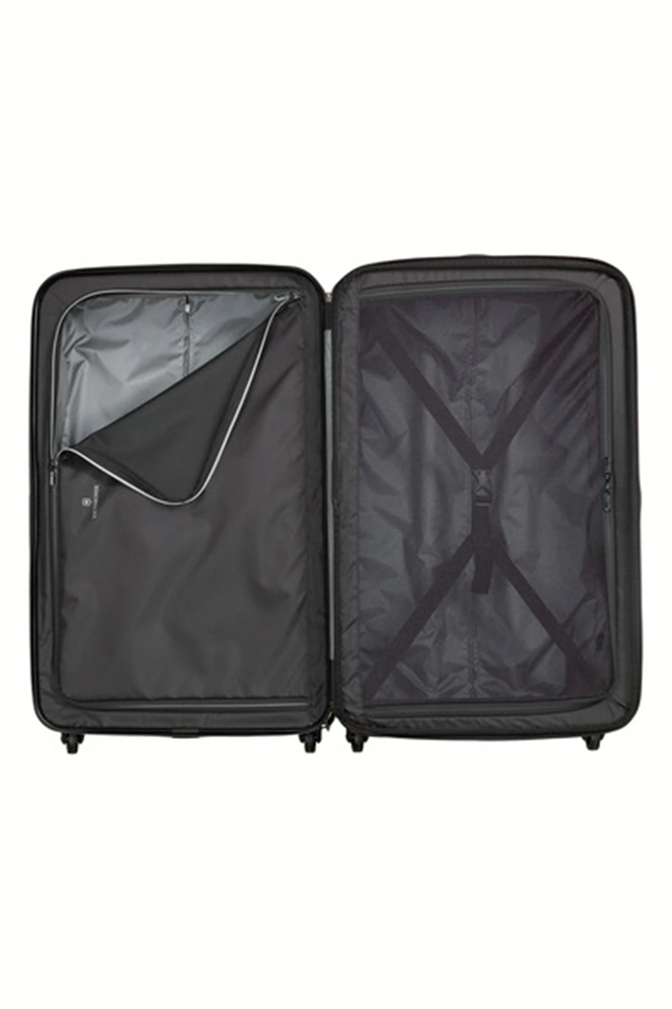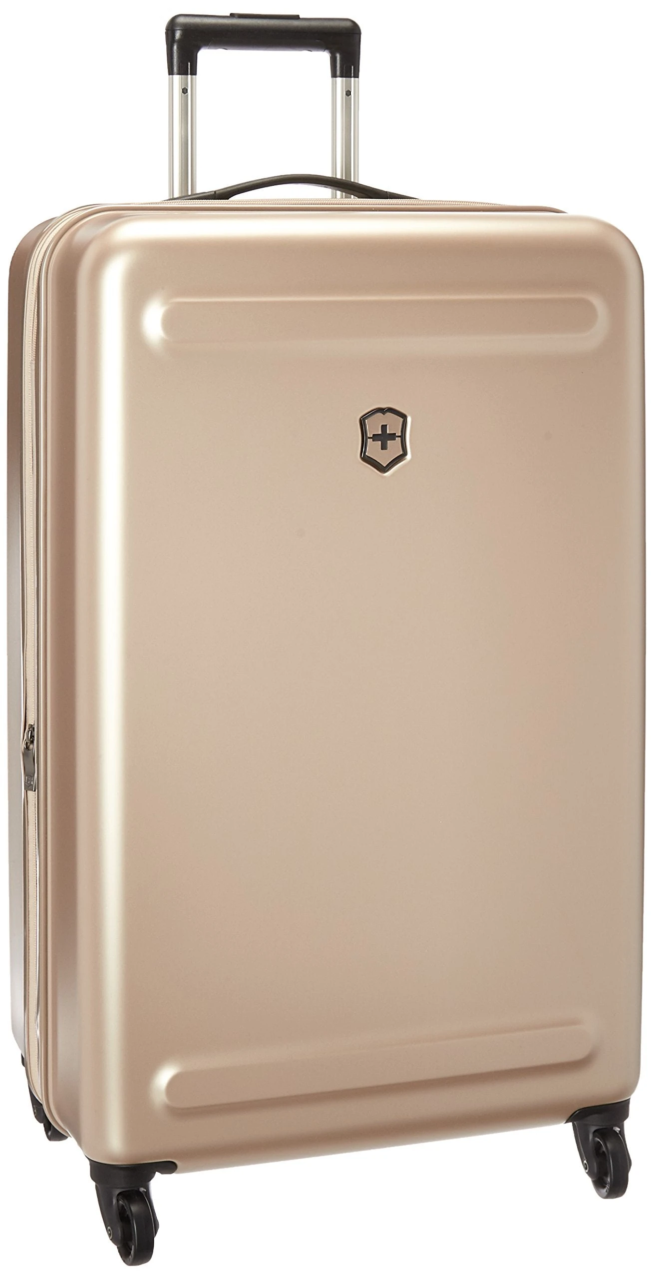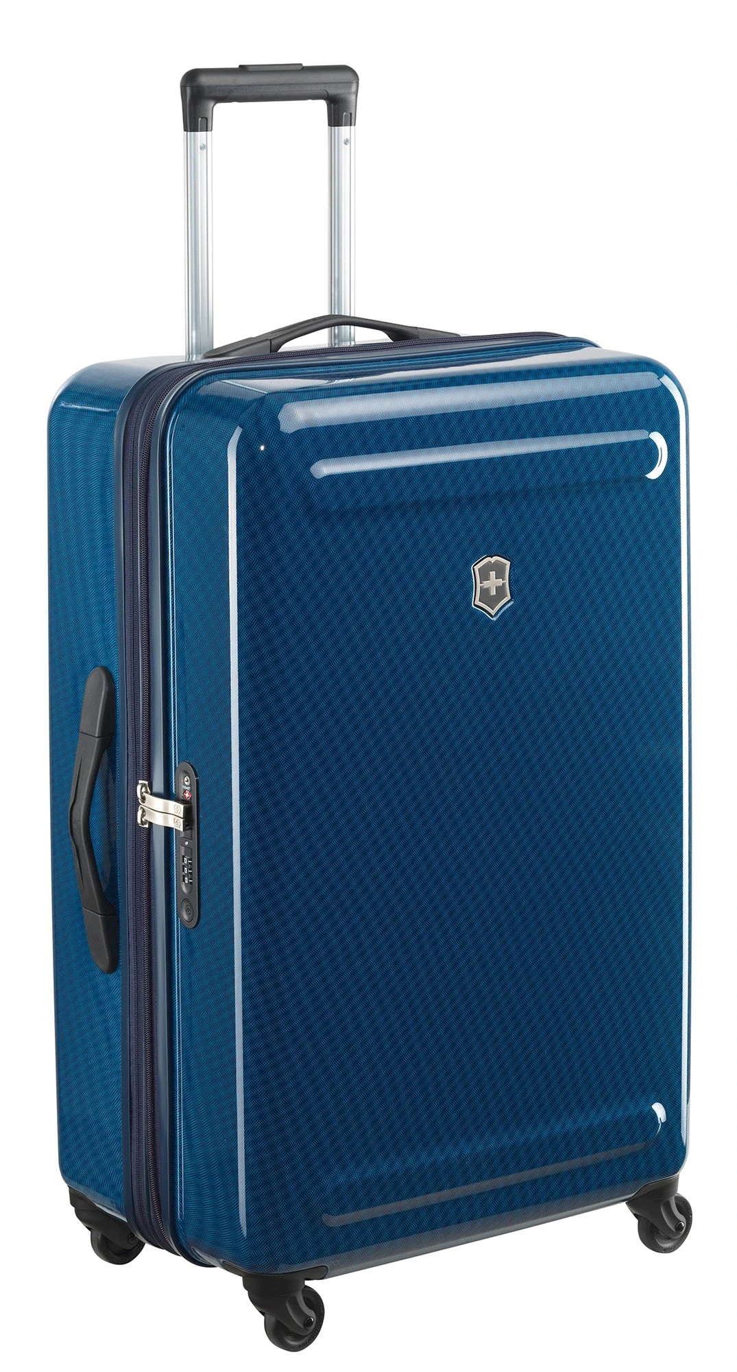 This lightweight 100% pure polycarbonate global carry-on easily glides down airplane aisles and provides added capacity when needed courtesy of a zippered expansion system. On the interior zippered dividers create two spacious packing compartments while an expansion system provides additional packing capacity when needed. Comfort grip, one-touch dual trolley handle locks into three positions to accommodate travelers of various heights. Premium 55mm Hinomoto wheels ensure a smooth roll. Y-shaped compression straps keep folded items secure and help reduce wrinkles. Integrated Travel Sentry Approved lock allows TSA screener to open the lock without destroying it, and relock it after inspection. Access Lock Combination Recovery Program allows you to register your lock combination on victorinox.com and recover if ever forgotten. Top haul handle for easy grabbing. Global 10-Year Limited Warranty