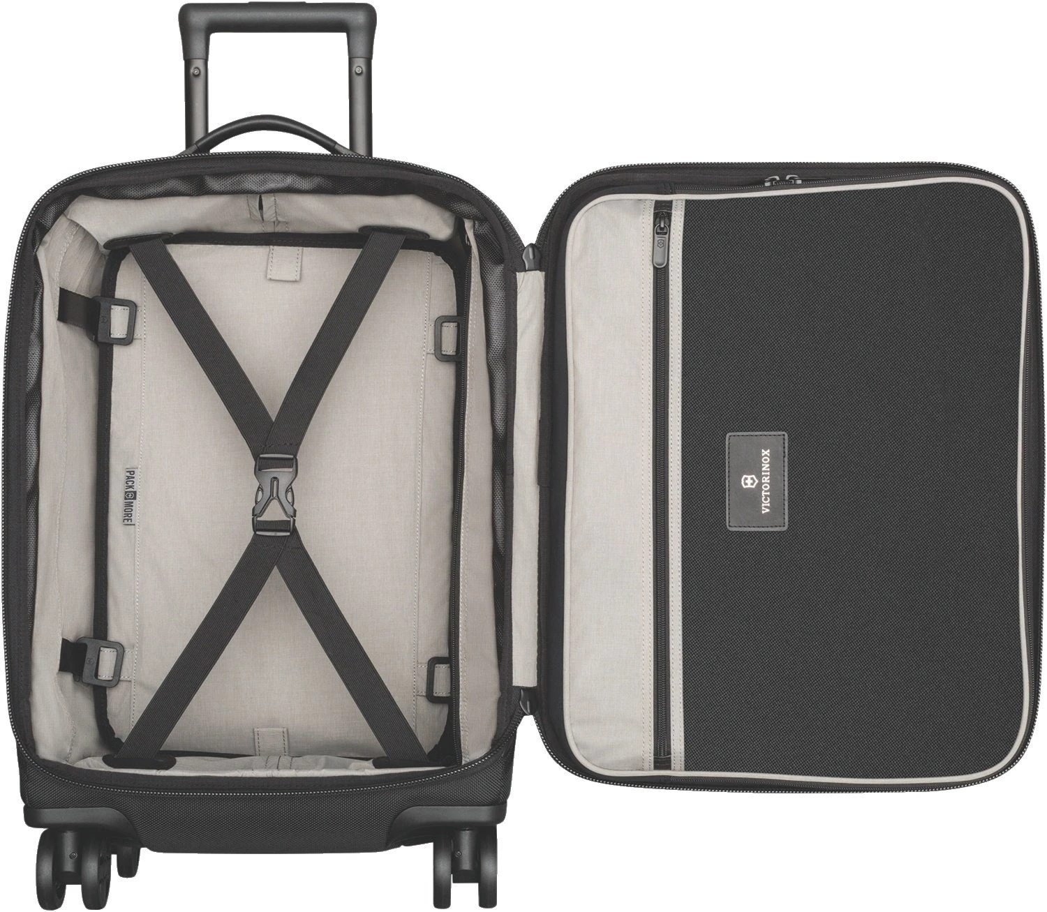 - Deluxe Pack More divider features a large, easy-to-clean water-resistant storage pocket, is adjustable in height and creates a flat packing surface for wrinkle-free transport of clothing