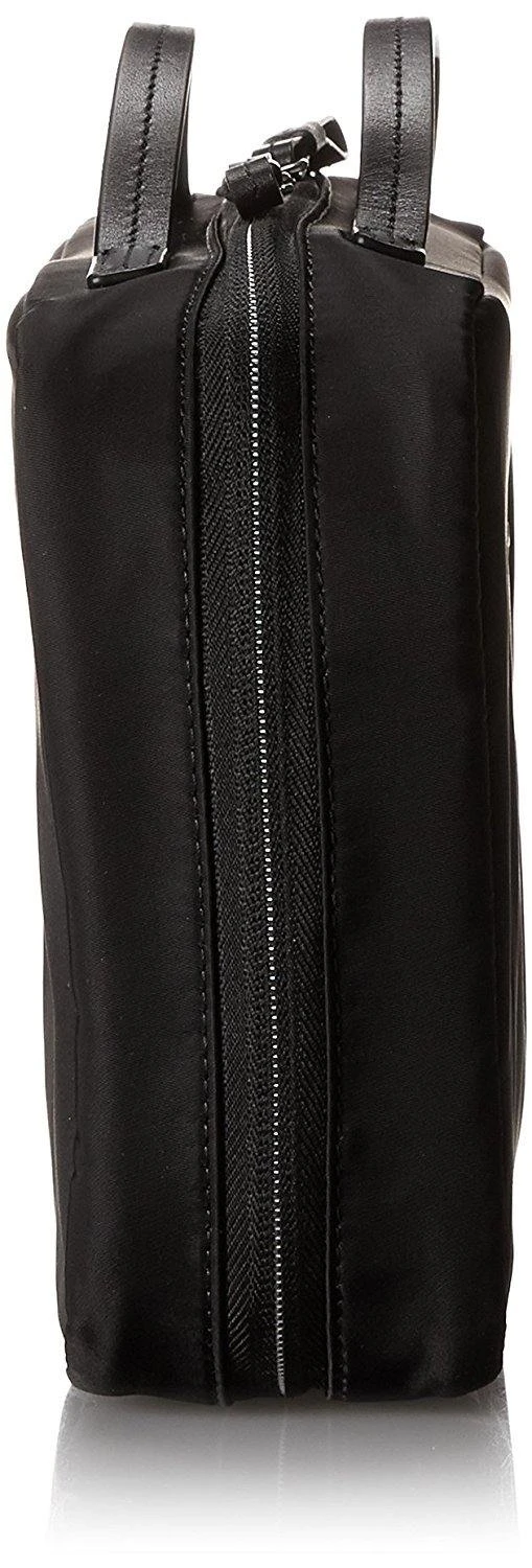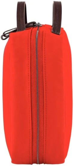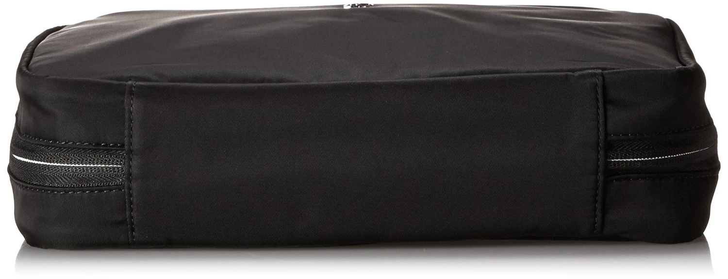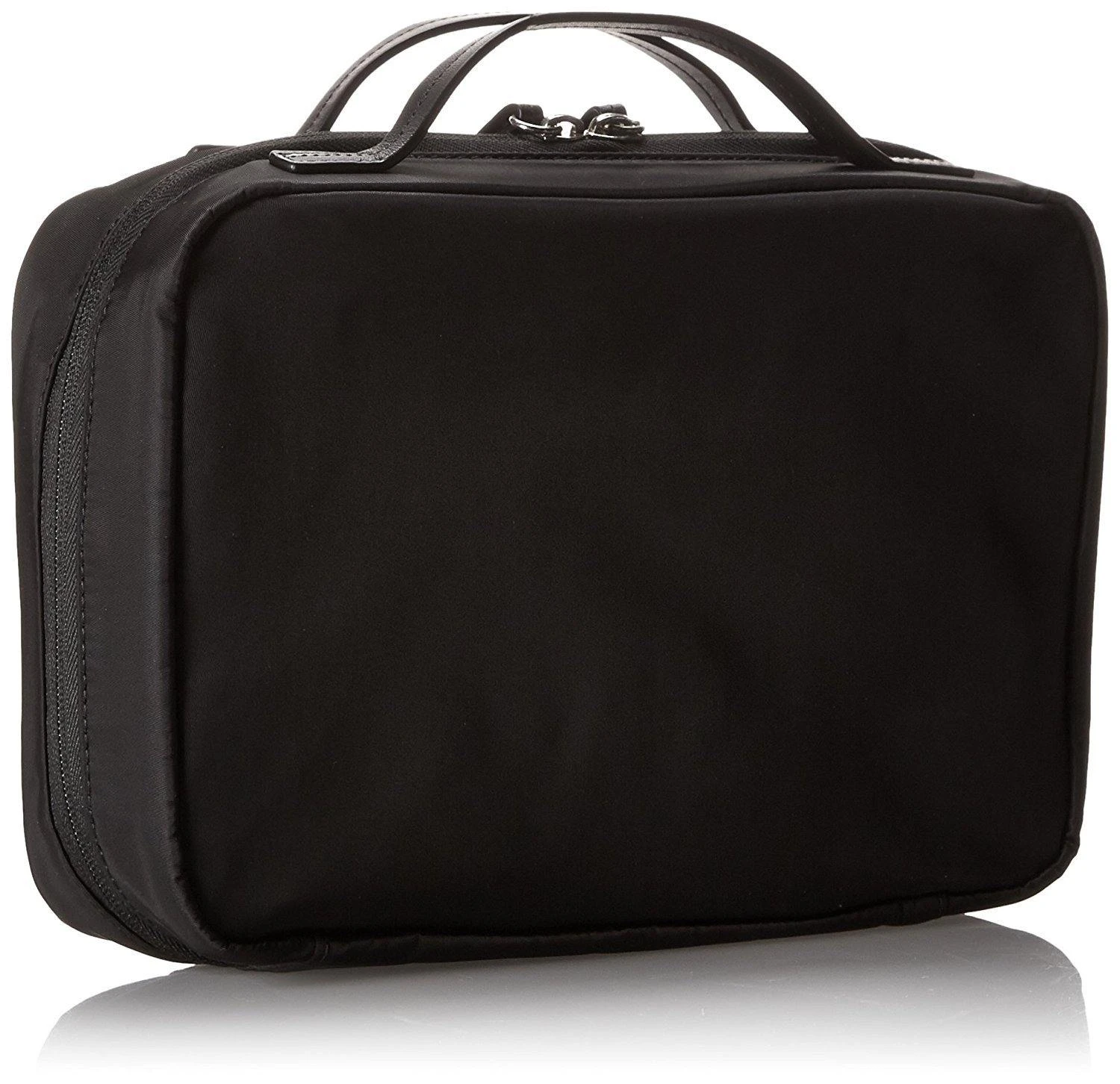 Keep your make-up and beauty essentials neatly organized. Offers plenty of space for full-size and travel-size bottles. Unfolds to give you four storage compartments. Top hook allows case to hang from a shower bar or towel rack. Water-resistant interior for easy cleaning. Convenient detachable zippered pouch is ideal for taking a few essentials with you on the go. Leather haul handles. Elegant silver hardware and leather touch points.