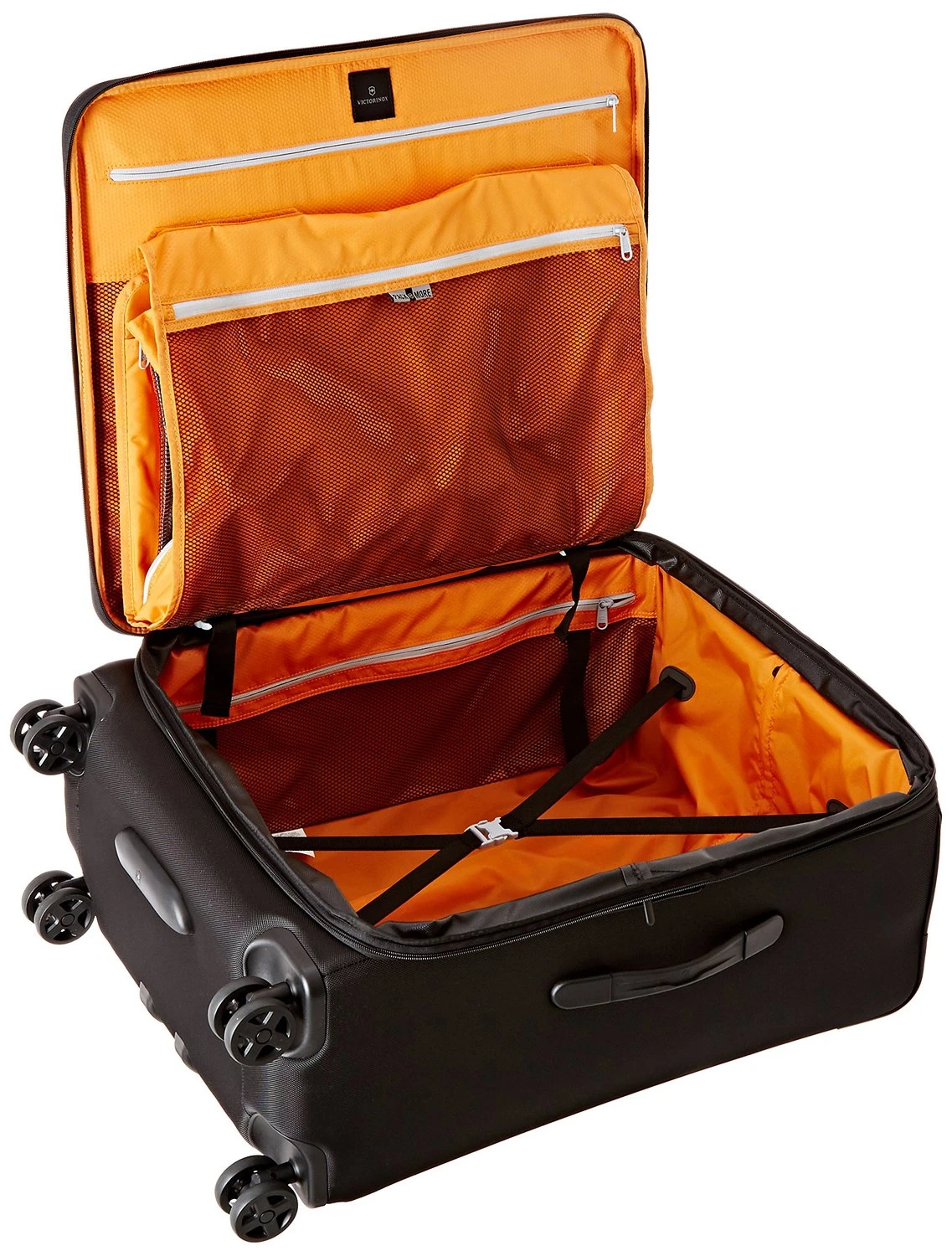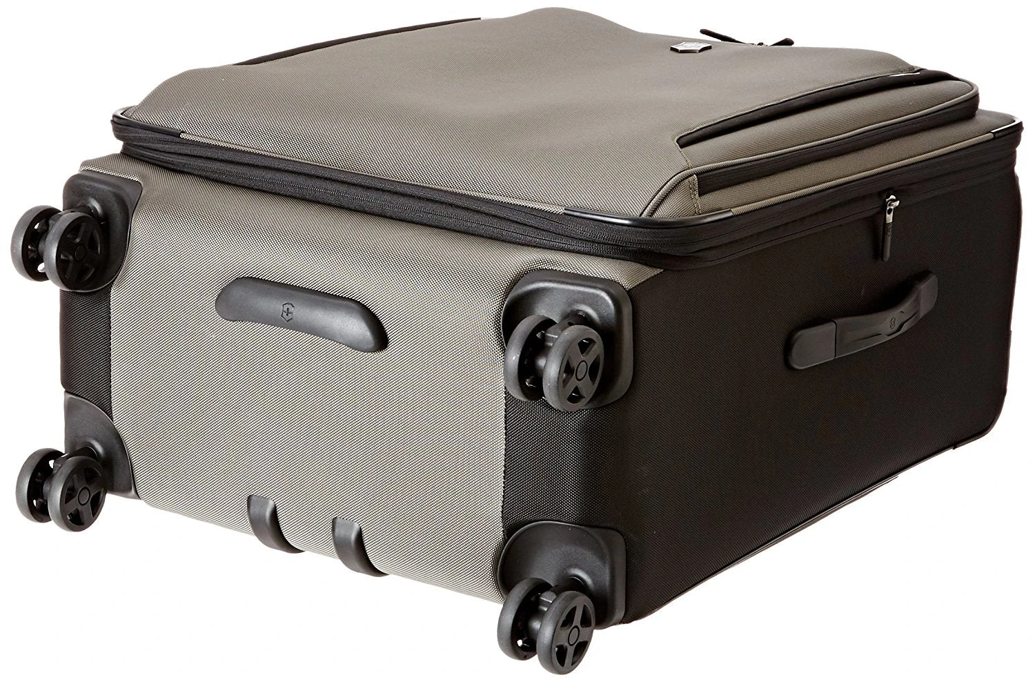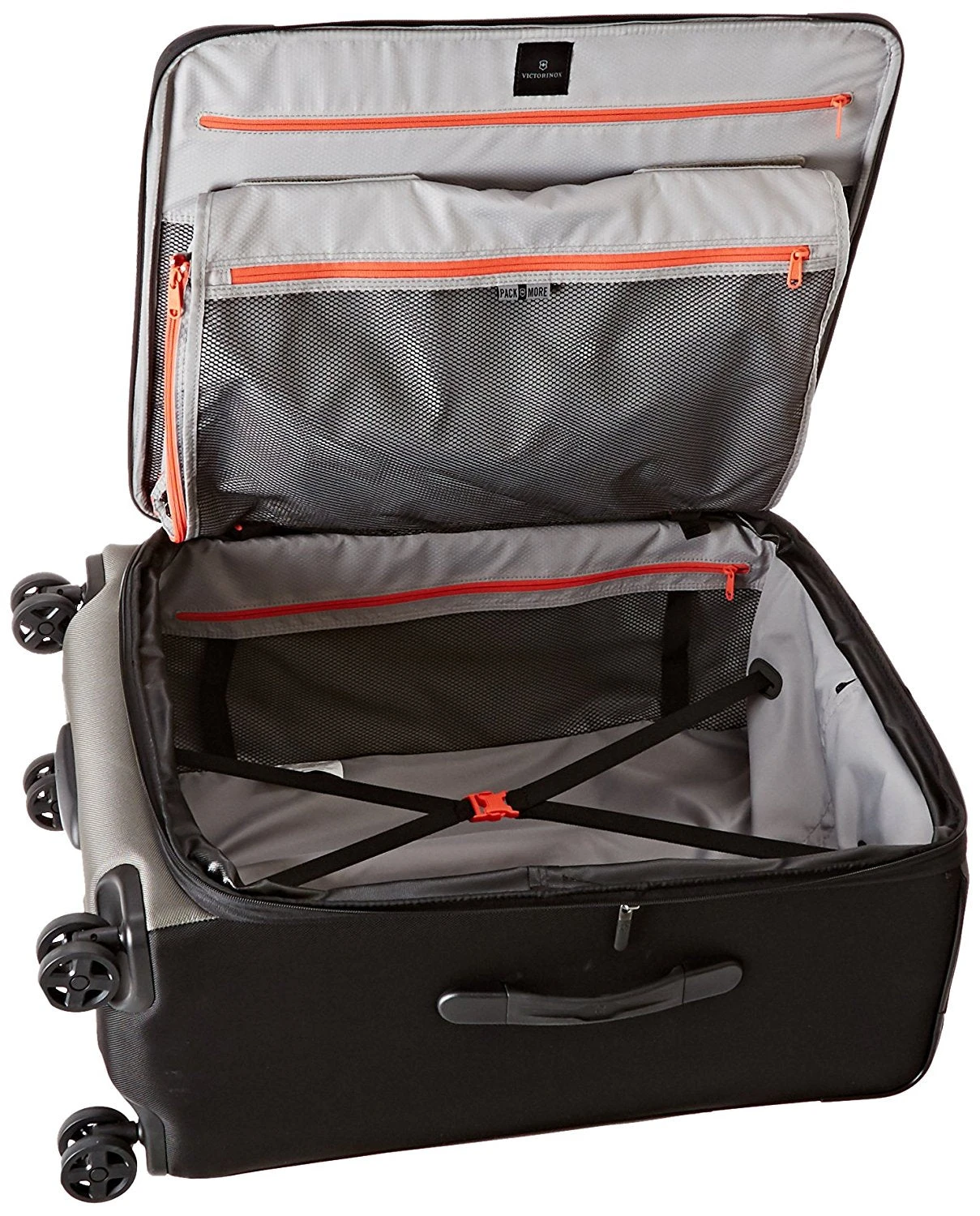 Large upright features the intelligent pack more system which consists of five packing solutions including the pack more divider which allows you to pack clothing flat and wrinkle-free. U-shaped front pocket holds up to a 17 inch 43 cm laptop. The intelligent pack more system consists of five packing solutions resulting in 32 possible packing configurations. Pack more system includes the pack more divider, X-shaped compression straps, a removable suiter, a 2 inch 5 cm zippered expansion and a removable attach-a-bag strap. Pack more divider is adjustable in height and creates a flat packing surface for wrinkle-free transport of clothing. X-shaped compression straps secure and condense contents of bag. Removable attach-a-bag strap secures an additional bag to the front of the upright and holds up to 30 lbs. 13.6 kg. Ribbed, geluxe comfort grip dampens vibrations. Rear skid plates protect the bag from abrasion. Lockable YKK racquet coil zippers. Access lock combination recovery program allows you to register your lock combination on victorinox.com and recover it if it is ever forgotten. Global lifetime plus limited warranty- for five years from the date of purchase this warranty covers functional damage caused by common carries such as airlines, taxis, trains and cruise ships, as well as defects in materials and workmanship. Should a defect or damage appear under normal used during the first five years of ownership, we will repair or replace your product as appropriate at our discretion. For years six and beyond the product is guaranteed to be free from defects in materials and workmanship. See victorinox.com for full warranty details.