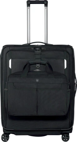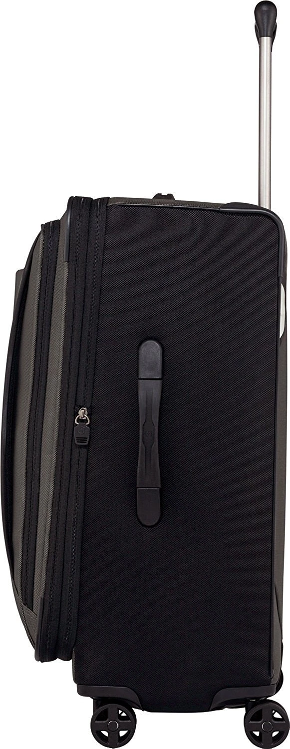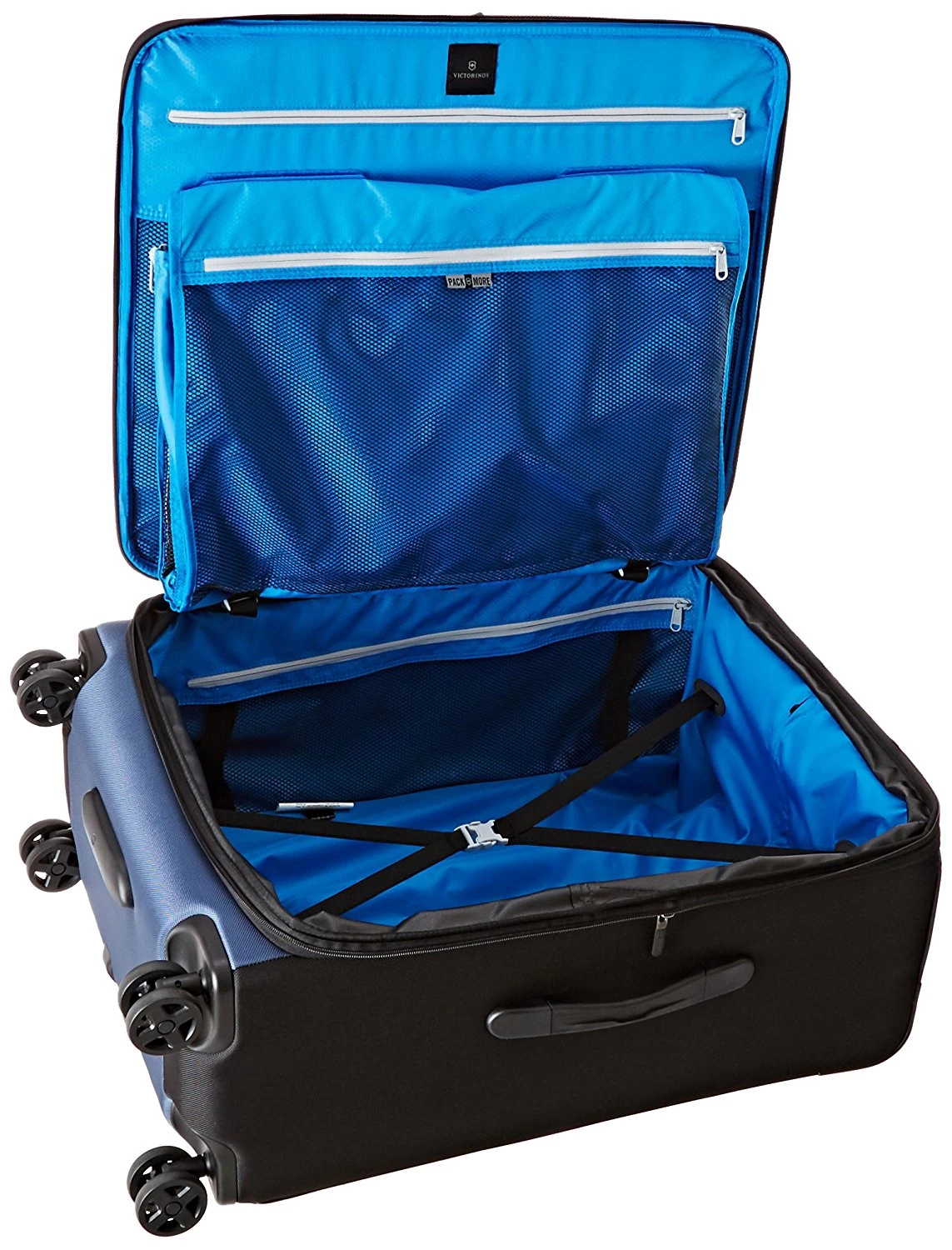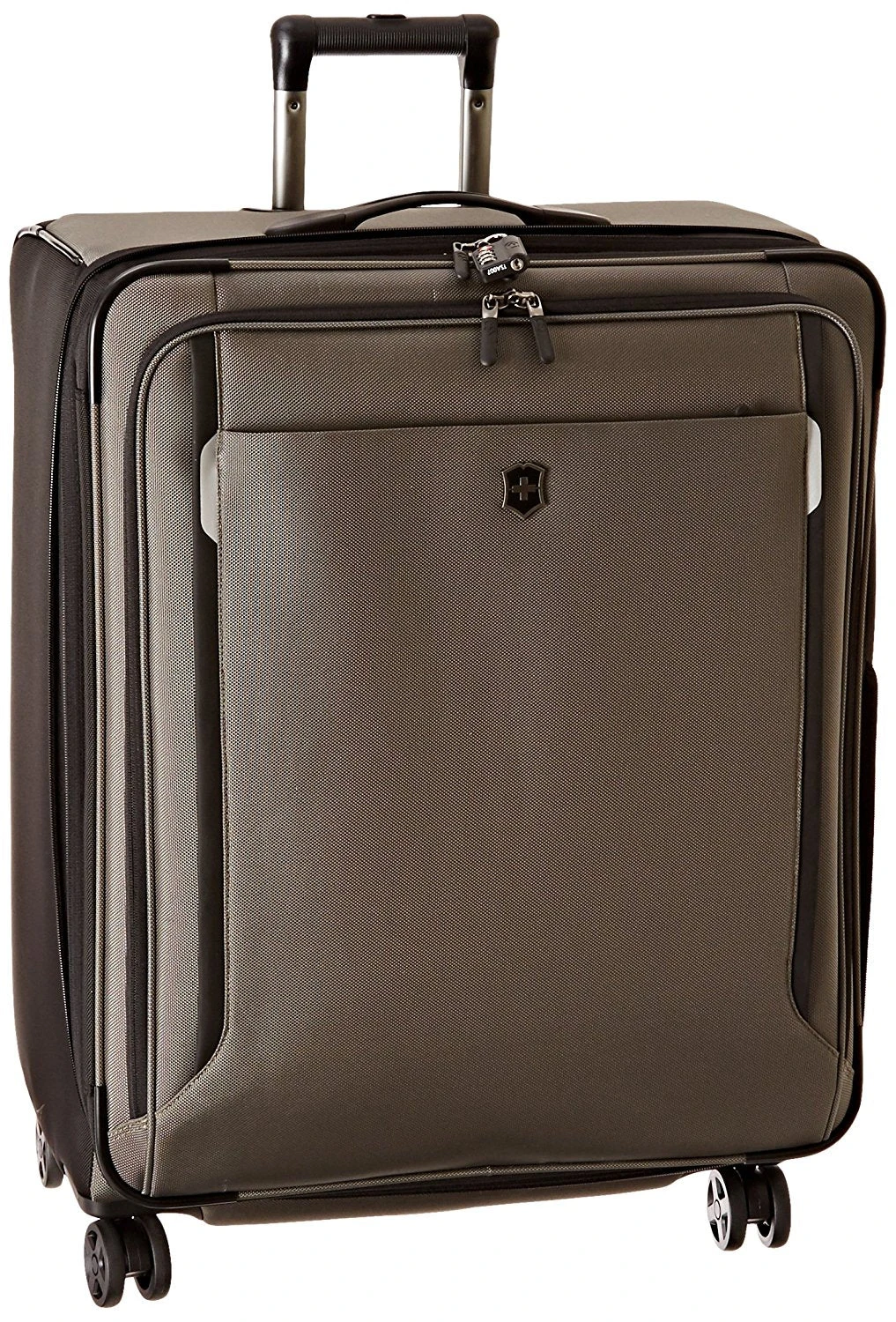 Large upright features the intelligent pack more system which consists of five packing solutions including the pack more divider which allows you to pack clothing flat and wrinkle-free. U-shaped front pocket holds up to a 17 inch 43 cm laptop. The intelligent pack more system consists of five packing solutions resulting in 32 possible packing configurations. Pack more system includes the pack more divider, X-shaped compression straps, a removable suiter, a 2 inch 5 cm zippered expansion and a removable attach-a-bag strap. Pack more divider is adjustable in height and creates a flat packing surface for wrinkle-free transport of clothing. X-shaped compression straps secure and condense contents of bag. Removable attach-a-bag strap secures an additional bag to the front of the upright and holds up to 30 lbs. 13.6 kg. Ribbed, geluxe comfort grip dampens vibrations. Rear skid plates protect the bag from abrasion. Lockable YKK racquet coil zippers. Access lock combination recovery program allows you to register your lock combination on victorinox.com and recover it if it is ever forgotten. Global lifetime plus limited warranty- for five years from the date of purchase this warranty covers functional damage caused by common carries such as airlines, taxis, trains and cruise ships, as well as defects in materials and workmanship. Should a defect or damage appear under normal used during the first five years of ownership, we will repair or replace your product as appropriate at our discretion. For years six and beyond the product is guaranteed to be free from defects in materials and workmanship. See victorinox.com for full warranty details.