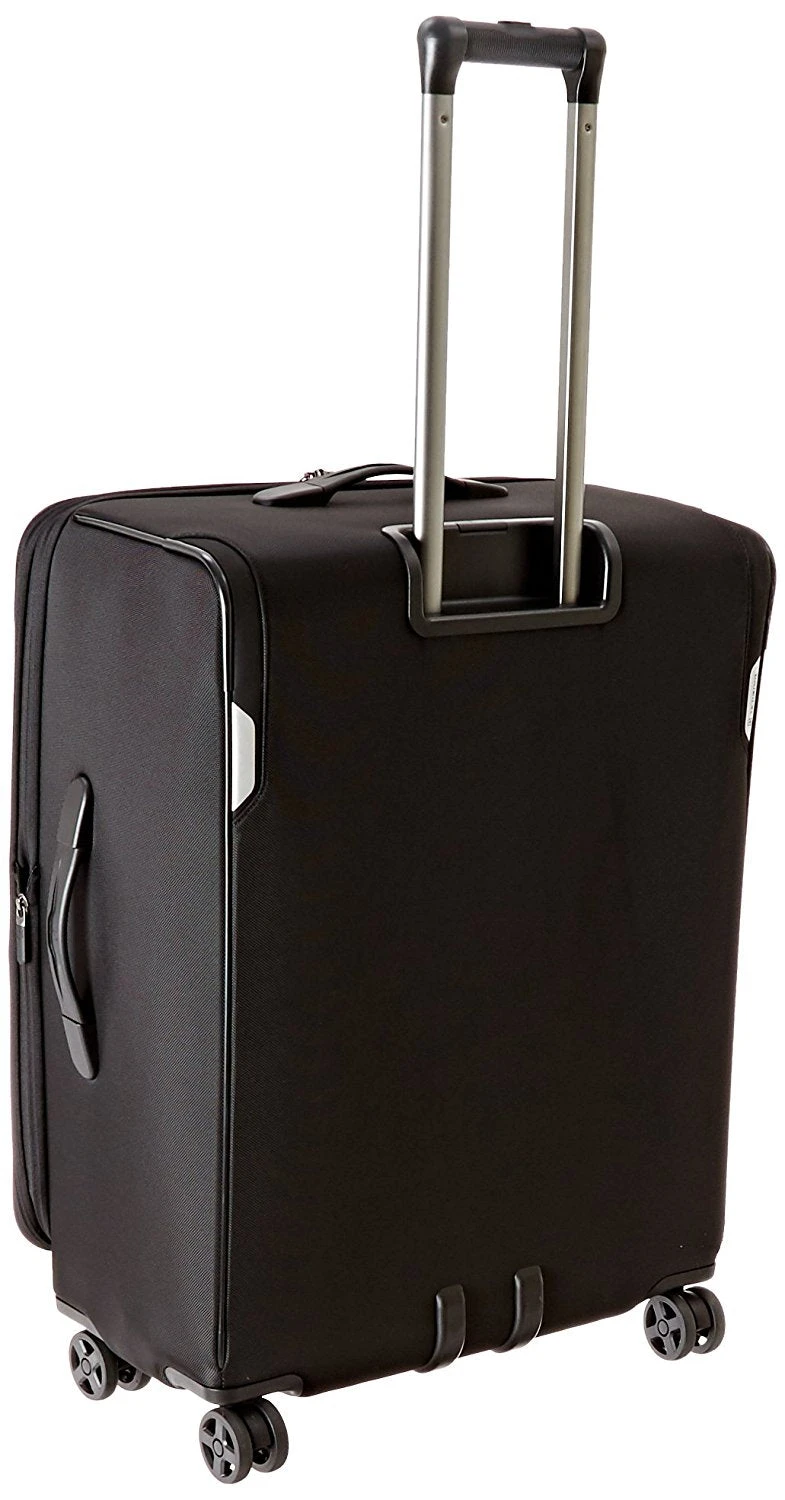 - One-touch, dual-trolley aluminum handle system locks into three positions – 41 inch 104 cm, 39 inch 99 cm and 37 inch 94 cm – to accommodate travelers of various heights and allows for superior control and maneuverability through tight spaces and allows you to rest another bag on top of the upright for consolidated travel