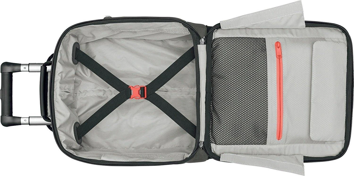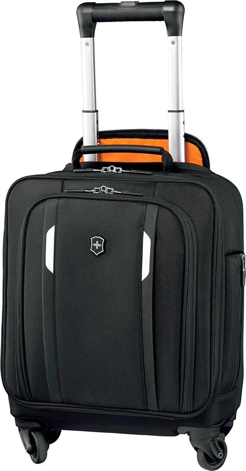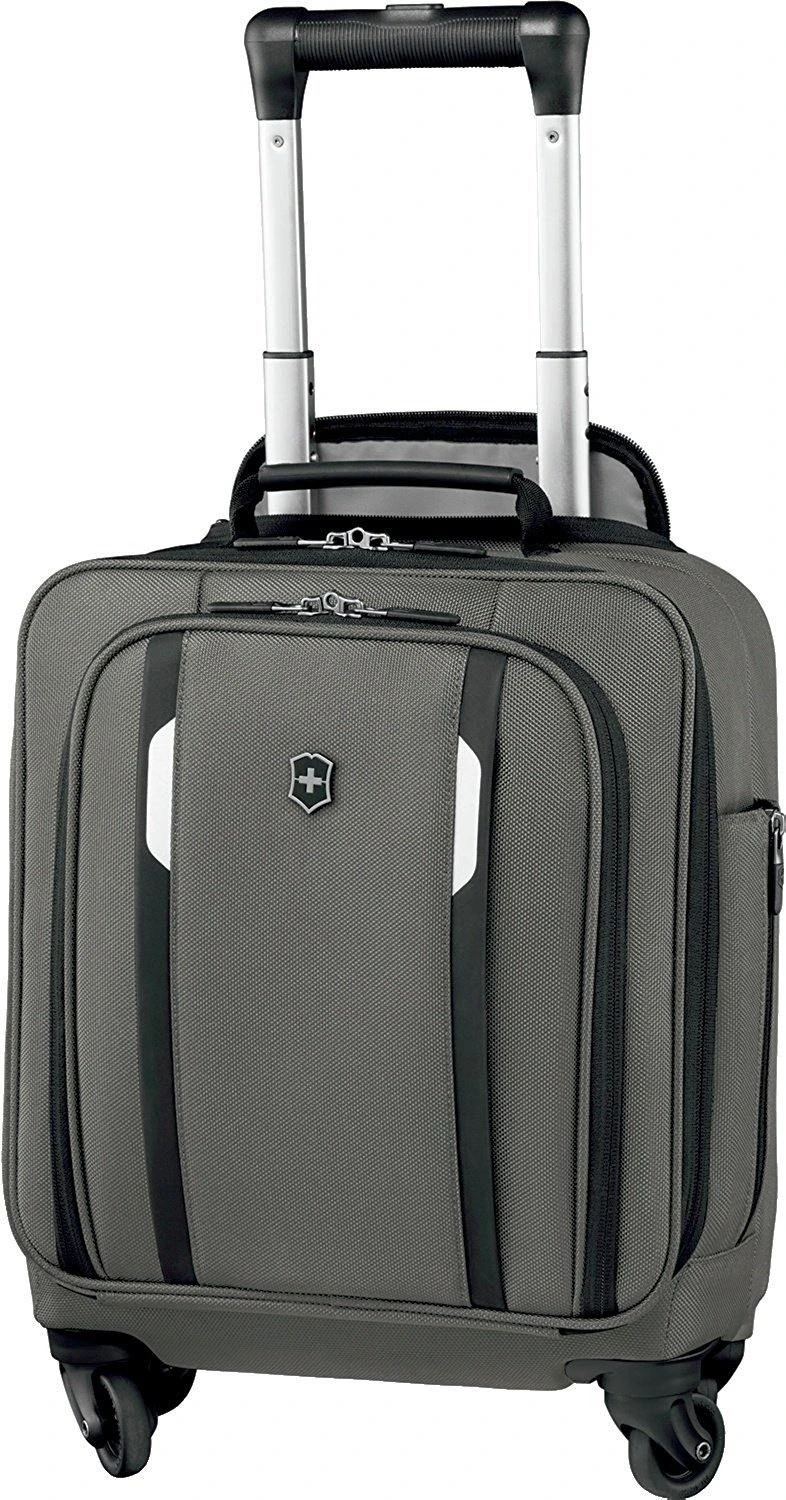 This compact yet spacious 4-wheel tote is perfect for overnight travel and lays flat for easy packing. Dual-trolley handle system allows for superior control. Ribbed, geluxe comfort grip dampens vibrations. Four premium, 50mm hinomoto wheels ensure a smooth roll across any surface and provide 360 degree, zero weight-in-hand maneuverability. Interior features X-shaped compression straps to secure and condense contents, a padded pocket sized to hold a tablet or E-reader and a zippered mesh pocket. Interior side gussets can be secured after packing making it easy to access contents on the go while bag is standing upright. Front organization panel features two small padded electronics pockets and a zippered mesh pocket. Exterior features a hidden zippered storage pocket and a zip-away side pocket ideal for a water bottle or umbrella. Rear pocket converts to a sleeve for sliding over the handle system of wheeled luggage. Lockable YKK racquet coil zippers. Travel sentry approved combination lock secures belongings and allows U.S. Airport security screeners to open the lock without destroying it and relock it after inspection. Access lock combination recovery program allows you to register your lock combination on victorinox.com and recover it if it is ever forgotten. Global lifetime plus limited warranty- for five years from the date of purchase this warranty covers functional damage caused by common carries such as airlines, taxis, trains and cruise ships, as well as defects in materials and workmanship. Should a defect or damage appear under normal used during the first five years of ownership, we will repair or replace your product as appropriate at our discretion. For years six and beyond the product is guaranteed to be free from defects in materials and workmanship. See victorinox.com for full warranty details.