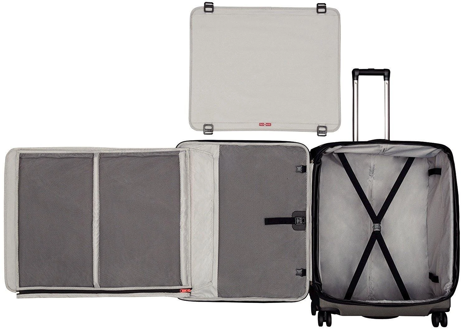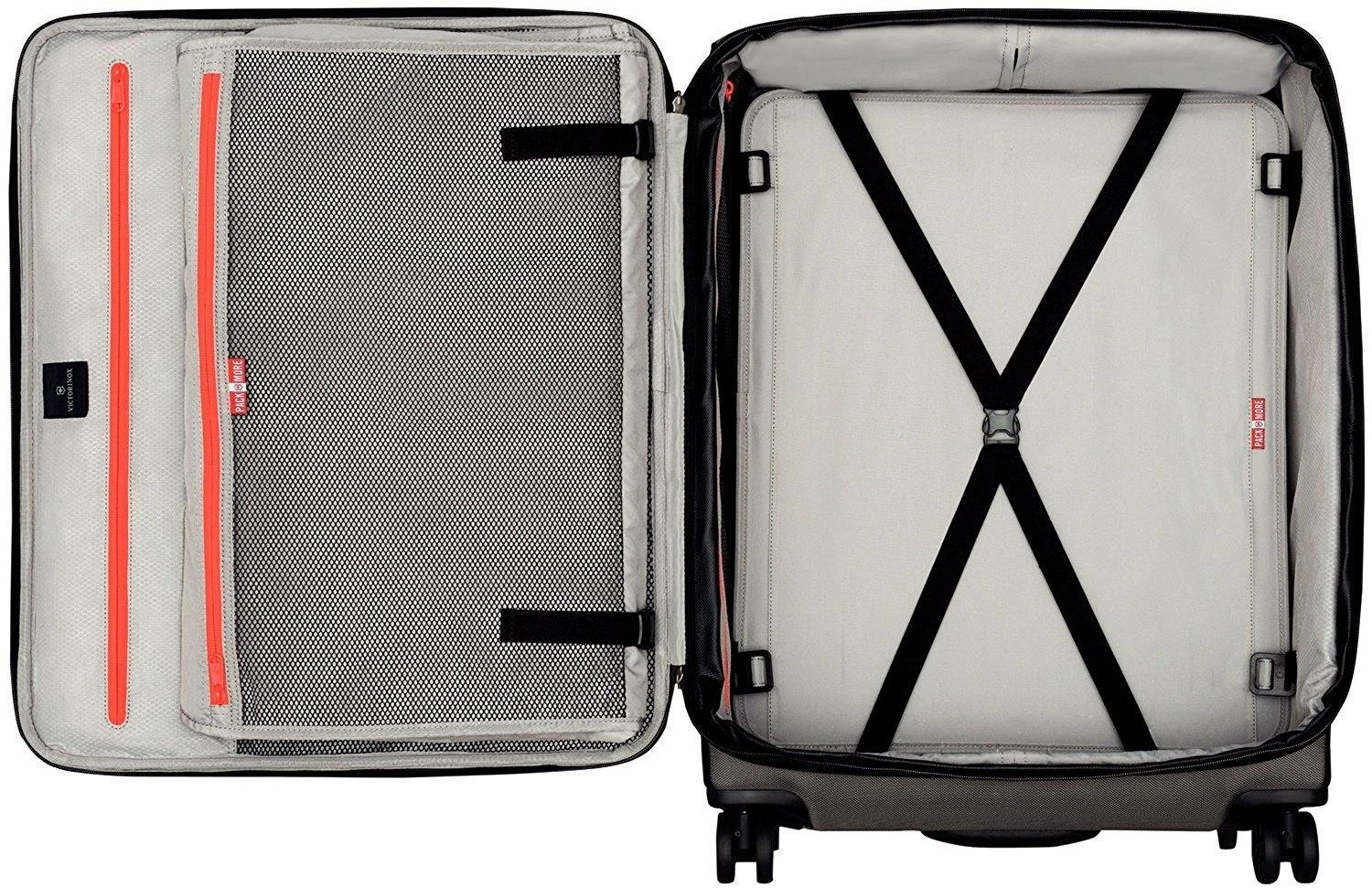 Lightweight 27-Inch and 22-Inch carry-on cabin bag contains four packing solutions including the pack more divider which allows you to organize belongings and pack clothing flat and wrinkle-free. the 22-Inch has a U-shaped front pocket that holds up to a 15.6 inch 40 cm laptop. The intelligent pack more system consists of four packing solutions resulting in 16 possible packing configurations. Pack more system includes the pack more divider, X-shaped compression straps, a removable suiter, a 2 inch 5 cm zippered expansion and a removable attach-a-bag strap. Pack more divider is adjustable in height and creates a flat packing surface for wrinkle-free transport of clothing. X-shaped compression straps secure and condense contents of bag. Removable attach-a-bag strap secures an additional bag to the front of the upright and holds up to 30 lbs. 13.6 kg. Ribbed, geluxe comfort grip dampens vibrations. Id tray slides into handle bezel for security and convenience. Rear skid plates protect the bag from abrasion. Lockable YKK racquet coil zippers. Travel sentry approved combination lock secures belongings and allows U.S. Airport security screeners to open the lock without destroying it and relock it after inspection. Access lock combination recovery program allows you to register your lock combination on victorinox.com and recover it if it is ever forgotten. Global lifetime plus limited warranty- for five years from the date of purchase this warranty covers functional damage caused by common carries such as airlines, taxis, trains and cruise ships, as well as defects in materials and workmanship. Should a defect or damage appear under normal used during the first five years of ownership, we will repair or replace your product as appropriate at our discretion. For years six and beyond the product is guaranteed to be free from defects in materials and workmanship. See victorinox.com for full warranty details.